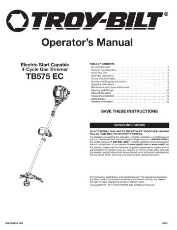 Download troy bilt tb575ec manual mobipocket